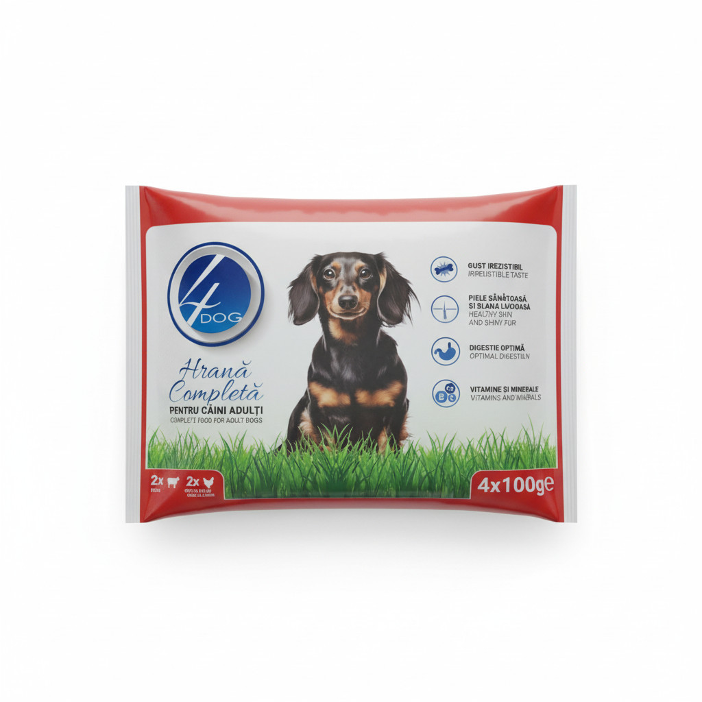 4DOG nedves kutyaeledel Mix 4*100g Csirke/Marha