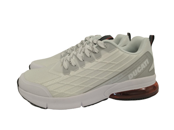 A fehér Ducati sportcipő a bizonyíték arra, hogy a sportos karakter és a kifinomult elegancia nem zárja ki egymást. Ez a lábbeli a letisztult formavilág kedvelőinek készült, akik szeretik, ha cipőjük vonzza a tekintetet, de kerülik a túlzott harsányságot. A fehér szín tisztaságot és modernitást sugároz, miközben a Ducati-logó diszkrét jelenléte a technikai tökéletességet hirdeti.